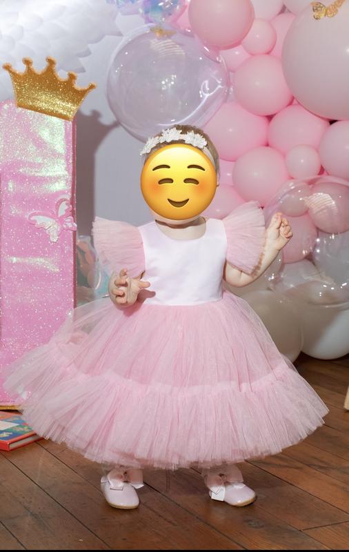 Платье розовое, юбка из фатина , пишная. Состояние идеальное, дефектов нет. Размер 80, грудь 44 см, талия 45 см. Повязка на голову в подарок