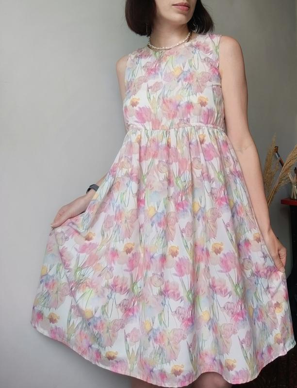 Платье в цветы #Creamie На рост 158см (как на фото) - длина - 92см; - ПОГ - 42см максимум; - ПОТ - 38-40см. Материал верха: полиэстер Подкладка: хлопок
