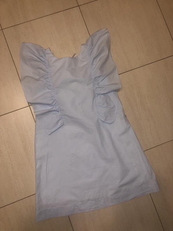 Мила бавовняна сукня на підкладці , оригінальне пошиття - шлярки крильця та завʼязки на спині створюють милий та ніжний образ.. На ріст 128см . Дефекти відсутні .