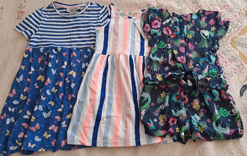 Платье для девочки новые, на рост 104 см. Темно синяя с птичками - это сплошной комбинзончик с шортами. Поштучно 100грн. вместе 240грн