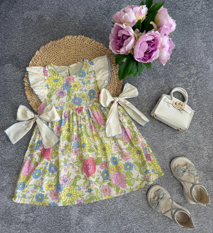 Невероятно красивое легесенькие летнее платье 🔥 Тканина -бавовна /котон На спинке присутствует пуговица По бокам большие бантики Очень красиво сидит на ребенке Хорошее качество!Рекомендую ✅ 90 - длина 50 см, ширина 27 см (3 шт) 100- длина 53 см, ширина 30 см (2 шт) 110 - длина 57 см, ширина 30 (4 шт) 120 - длина 61 см, ширина 32 см(7 шт) 130 - длина 66 см, ширина 33 см(5 шт) 140 - длина 70 см, ширина 34 см(2 шт) нс