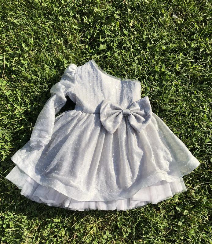 Розмір по бірці 104 Заміри сукні Довжина від плеча 52 см Рукав 34 Обхват талії 54-55 см Є фото на дитині