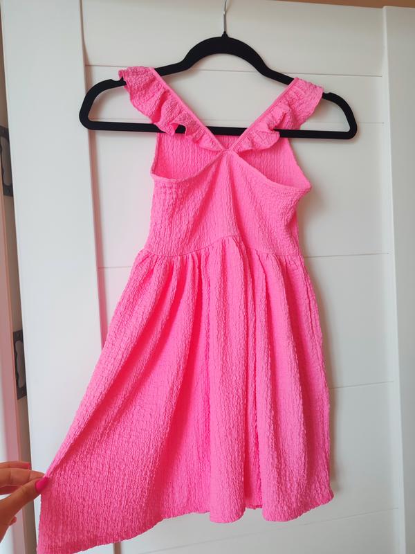Новое платье, но без бирки. Очень красивого яркого цвета, приятная ткань.