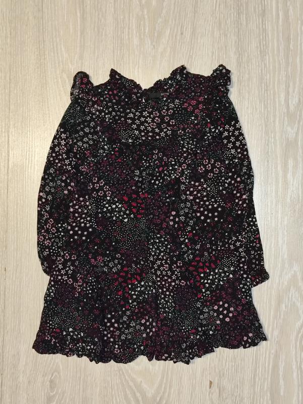 Фирменное платье с длинным рукавом в цветочный принт на 4-5 лет.Комир стойкой, на спинке застегивается на пуговицы Состав: 100% вискоза. Состояние отлично Замеры: длина по спинке от плеча 52 см, ширина между подмышками 32 см, рукав от воротника 37,5 см, по внутреннему шву 28 см