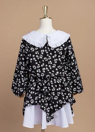 Сукня для дівчаток Колір: чорний (квітковий принт) Матеріал: софт, котон Країна виробник: Україна Талія на резинці 152 см – плечі 33 см, рукав 54 см, ПО грудей 47 см, ПО талії 24 см, довжина 84 см. 158 см – плечі 34 см, рукав 57 см, ПО грудей 47 см, ПО талії 24 см, довжина 91 см.