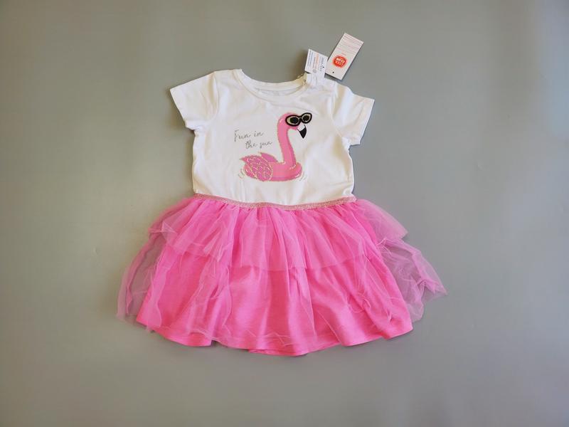 💥ВАЖЛИВО 💥 ☑️«БЕЗЕЧНАЯ ОПЛАТА»-ТОЛЬКО «ОПЛАТА ПРОДАВСТВА НА КАРТА» ☑️ПРЕДУПРЕМЛЛЕНИЯМИ УТОЧИТЕ ОБ НАЯВНОСТЬ ТОВАРА. ☑️ «ROZETKA”-НА ДАННОЕ ВРЕМЯ НЕ ОТПРАВЛЯЮ. Летнее платье с короткими рукавами, для маленькой модницы. Платье украшено блестящей лентой на поясе, двумя слоями фатина в области юбки и красивым принтом фламинго на груди. Для удобства переодевания на плече имеются кнопки. Размер-92 Цена-360 грн