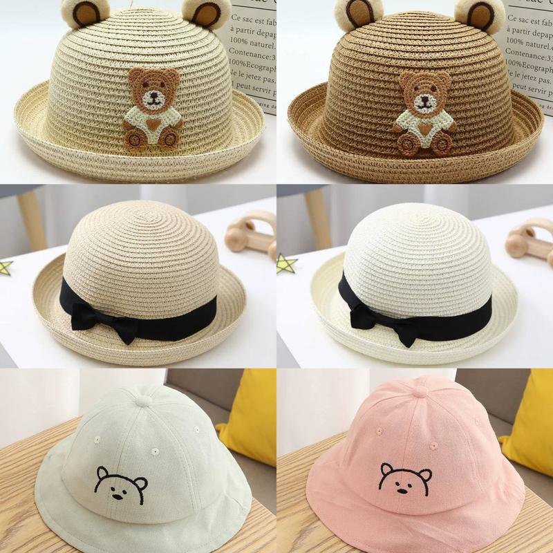 Капелюх солом'яний зі стрічкою (знімна) - кольори беж та мокко. Панама рожева та зелена - у двох розмірах (44-46 см та 46-48 см). Капелюх солом'яний тедді - кольори беж та мокко. Усі головні убори дуже якісні, легко поєднуються з образами.