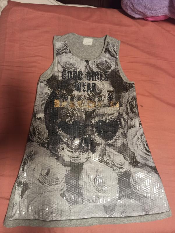 Стильное платье для маленькой модницы. Спереди платье расшито паетками поверх принта. Оригинал.