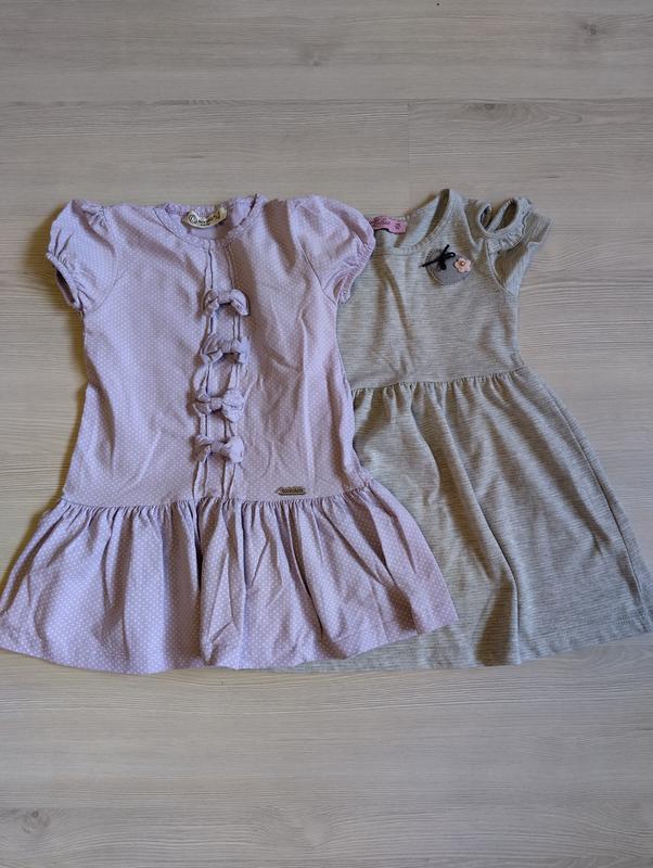 Платье для девочки. На 3-4 года. Стан идеален, как новые, одевались мало. Серенька по наборке на 5 лет, но маломерит. Цена указана за две. в подарок отдам милый купальник в отличном состоянии.