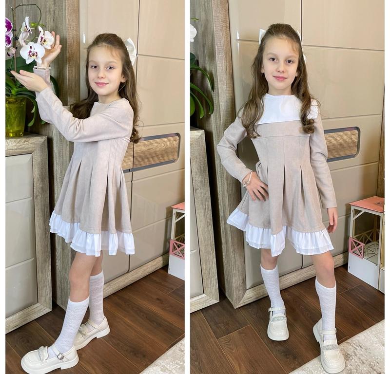 через кнопку купити тільки повна оплата!!!! Вишукана сукня для красунь 💗 Тканина замш діагональ, м'яка і приємна до тіла, воротник знімається Ззаду застібається на блискавку Якість 🔥 🔥 🔥 Заміри: довжина/ширина під руками/рукав від плеча 128 - 66/31/44