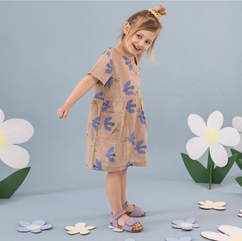 Платье до колена из воздушной хлопковой ткани с узором, круглым вырезом горловины, застежкой на пуговицы сверху и короткими рукавами. Собранный шов на талии и юбка с открытыми накладными карманами спереди. Без подкладки. Стан идеален. Состав 100% хлопок Размер 122 (6-7 лет)