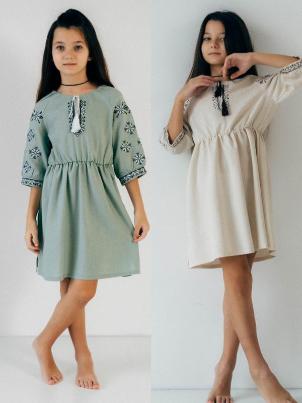 Сукня-вишиванка для дівчаток лляна, ошатна, family look, нарядное платье вышиванка льняное