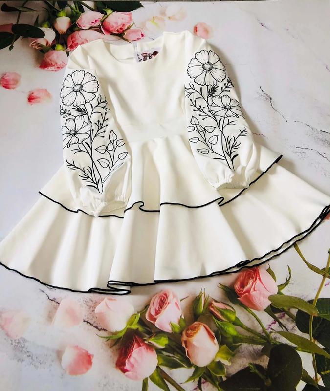 Сукня з вишивкою на рукавах ніжна,елегантна і дуууже гарненька тканина костюмка- Барбі рекомендую заміри:довжина/рукав/пог/пояс 134-69/51/36/32 140-72/53/37/33 146-74/55/38/35 152-76/57/40/37 +-2см