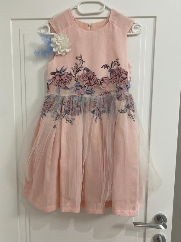 Нарядне плаття на дівчинку,розмір 146сна підкладці,застібка блискавка(на спинці)брошка знімається,зверху на спідниці фатин