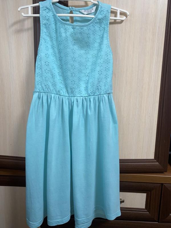 Нежное, очаровательное, невесомое платье на девочку 10-12 лет. Голубой цвет, натуральная ткань, верх отделан прошвой. На лето - MustHave в барышни. Состав - 50 коттон%, 50% вискоза. Производство Индия. В идеальном состоянии, без нюансов. Длина 77 см. Довж. до пояса - 27 см., НОТ - 32 см.