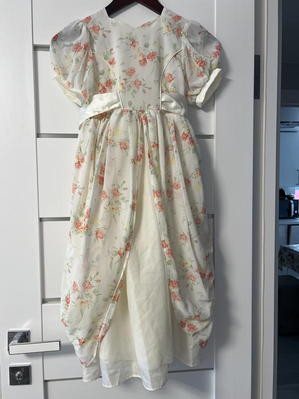 Святкова сукня на дівчинку на 134 зріст заміри сукні 90см. Квітково ніжний принт, чотири шари підюпника