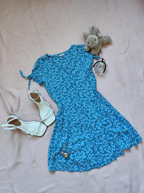 Платье голубое в цветочный принт р 152 см 12 лет John Lewis вискоза на пуговицах короткая летняя
