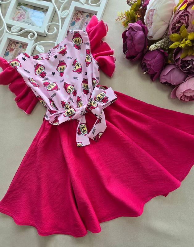 110-164- 705 грн под заказ 1-7 роб.днов. Невероятная новинка🤗😍😍😍😍 СУКНЯ " LABUBU", с очень пышной юбкой ❤️ 🌹Ткань: ЛЕН-ЖАТКА + super soft ( сублимационная печать) 🌹Сукня позаду на гудзику 🌹Дополнительно: талия на резинке 🌹! В комплекте идет пояс-завязка Замеры: +-1-2 см ✔️р.110-116- длина 60см / полный ОГ 61см. ✔р.122-128- длина 63см/ полный ОГ 63см. ✔р.140-134- длина 65см/ полный ОГ 68см. ✔р.152- 146- длина 69см/полный ОГ 75см. ✔р.164-158- длина 75см / полный ОГ 84см. ▪️N-36