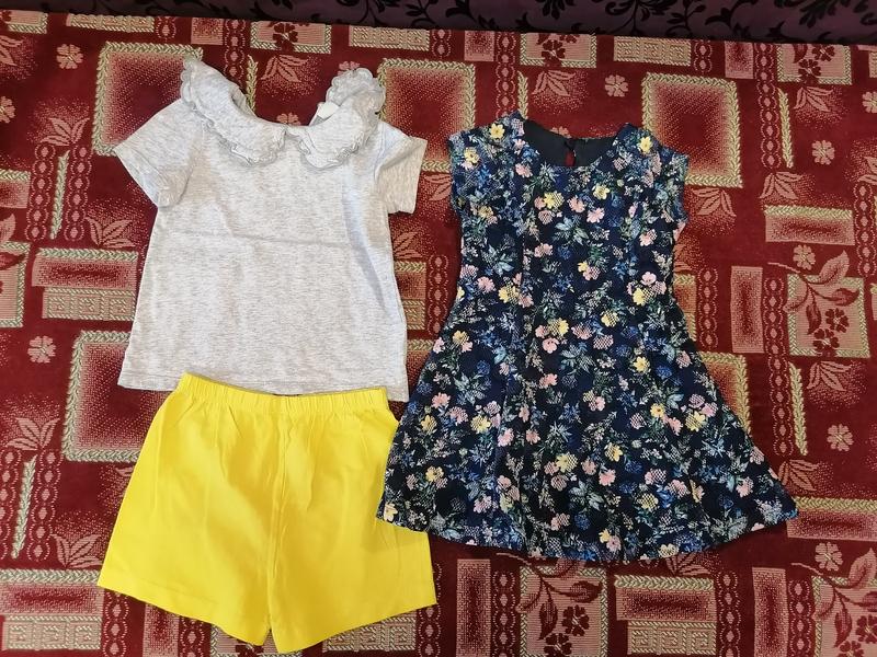 Цена в объёме за все вещи. (Можно приобрести вещи отдельно). Есть еще вещи на возраст 2-3 года. Смотрите другие Мои объёмы. Одежда в красивом состоянии. Замеры по каждой вещи: 1. Платье - Длина 51 см, ПОГ 26 см 2. Футболка - Длина 35 см, ПОГ 28 см 3. Шорты - Длина 23 см, полуобхват бедер 27 см Оплата на карту или через безопасную оплату. Доставка укрпошта, нова пошта.