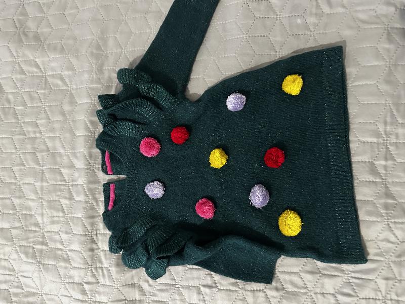 Тепла вʼязана сукня на маленьку дитину 6-9 місяців. У красивому смарагдовому кольорі з блиском. На рукавах оздоблені. Спереду милі нашив ні кульки. Відмінно доповнить образ для святкових подій. Параметри на фото По бірці 6-9 місяців, 74 зріст