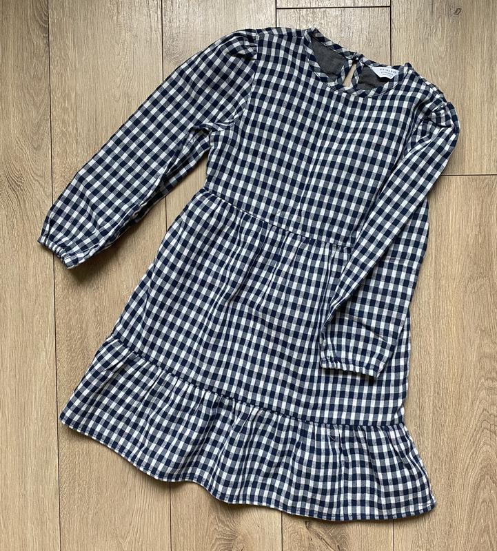 Сукня від Primark на вік 6-7 років (122 см) в ідеальному стані, є одна маленька затяжка збоку. Матеріал: 65% поліестер, 35% коттон. Заміри: довжина 66 см, рукав від плеча 42 см, ПОГ 34 см.