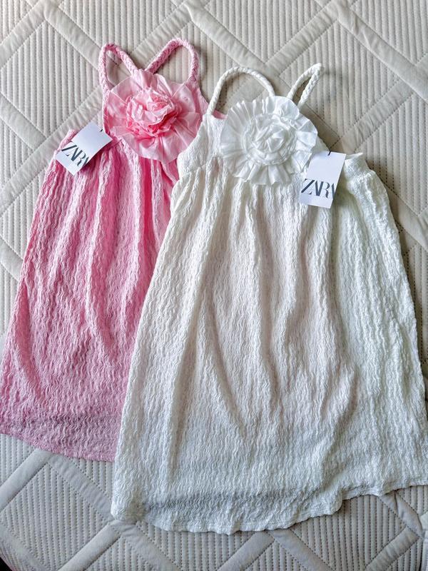 Платье с прямым вырезом. Лямки скрещенные сзади. Аппликация цветок на груди. Резиновое покрытие на спине. Розовое платье - на 10 лет (140 см) ✅ ПОГ: 35 см в свободном состоянии, сзади резинка ✅ ПОТ: свободно ✅ Длина: 73 см Белое платье на 13-14 лет (158-164 см) ✅ ПОГ: 38 см в свободном состоянии, сзади резинка ✅ ПОТ: свободно ✅ Длина: 81 см