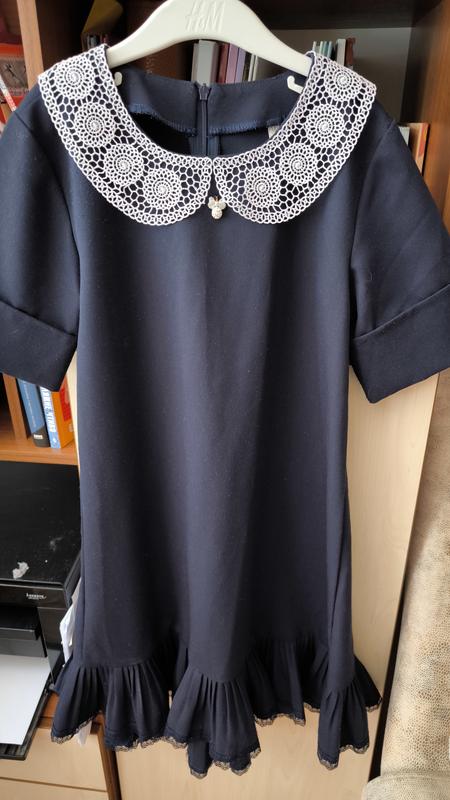 Платье школьное, все хорошее с нкю, из нюансов катышки на спине (на фото показала) от ношения рюкзака. Хоть и одевали редко ноmerюжкой машинкой нельзя без проблем убрать. Замеры позволяют придать, указан размер 34.