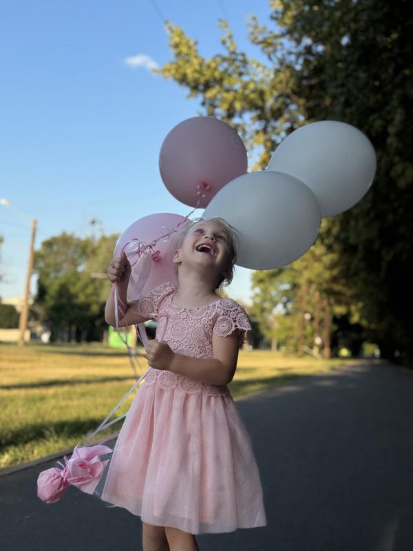 Витончене та елегантне, це плаття створене для справжньої маленької принцеси! Одягнене один раз для фотосесії. 💗 Верх із ажурного мережива виглядає розкішно, додає шарму та ніжності. ✨ Легка фатинова спідничка створює ніжний об’єм, не обмежує рухів і виглядає казково в русі. 🎀 Ідеальний вибір для днів народження, випускних у садочку, фотосесій, свят, або просто для чарівного дня з повітряними кульками в руках, як на фото. ⸻ Переваги плаття: ✔ Зручний крій — не сковує рухів ✔ М’яка внутрішня підкладка ✔ Актуальний пастельно-рожевий відтінок ✔ Надійна застібка, легке вбирання ✔ Плаття «росте разом із дитиною» завдяки еластичності тканини ⸻ 🎀 Доступні розміри: 98 🎨 Колір: пастельно-рожевий / пудровий