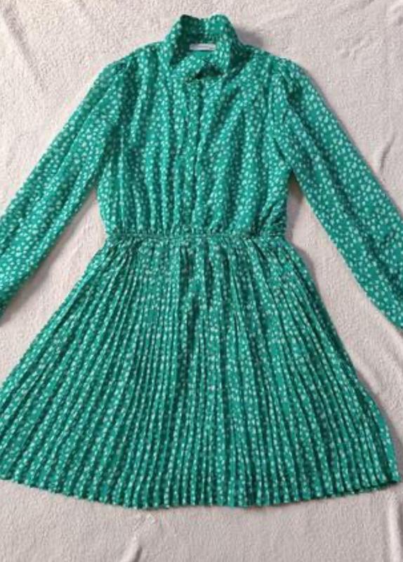 Гарна сукня для дівчинки зелена в принт 146 зріст На підкладці Шифонова прозора Низ гофре Верх на ґудзиках Довжина 85 Плечі 32 Рукав 54 низ гумка Напівобхват грудей 42 Талії 32 плюс гумка тягнеться Стегон 45 плюс по підкладці