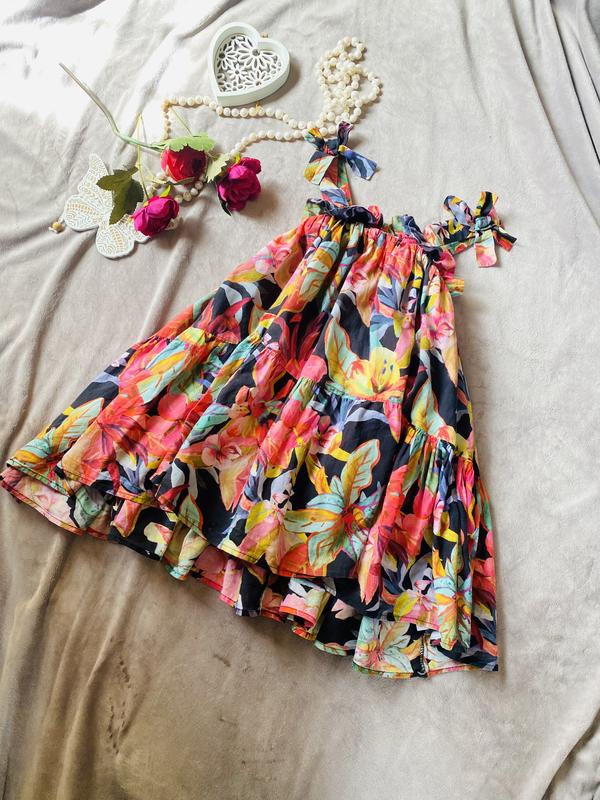 Гарненький пишний котоновий сарафанчик Next, тканина легенька. Стан ідеальний. Розмір 98 (2-3 роки), але найкраще орієнтуватись на заміри. Довжина по спинці 47 см (перед коротший). ПОГ 24 см (на легенькій резиночці зверху). Дод. фото та заміри на вимогу.