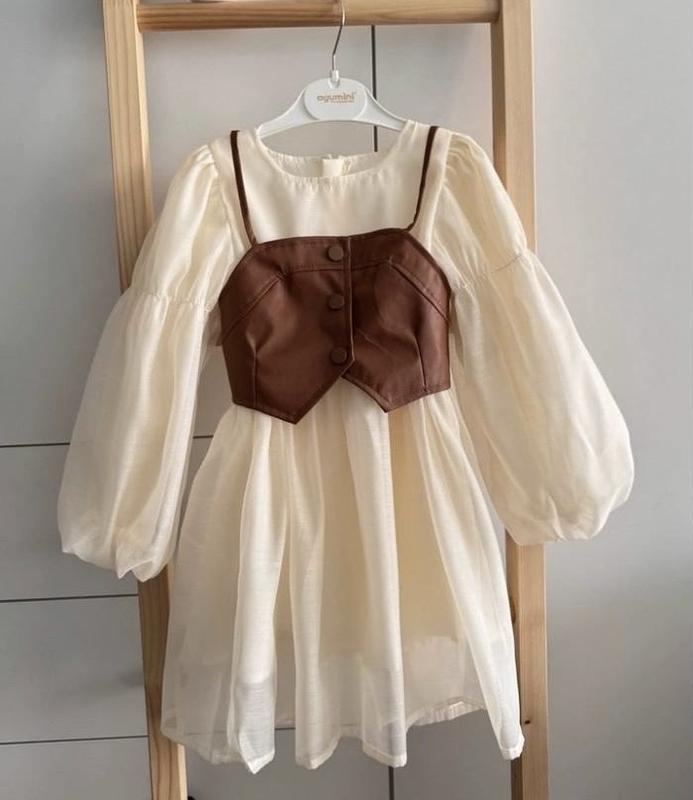 Інст babystore__clothing Матеріал сукні: шифон (легкий та приємний на дотик) Матеріал корсета: еко-шкіра (м'яка та еластична) відклад: бавовна (гіпоалергенна та приємна до тіла) Застібка: змійка на спинці (сукня), кнопки (корсет) Заміри: 90-Довжина сукні 55 см рукав від плеча 32 см ширина 25 *2 см Довжина топа без бретель 17 см ширина 25*2 см 110-Довжина сукні 63 см рукав від плеча 38 см ширина 28 *2 см Довжина топа без бретель 20 см ширина 28*2 см 120-Довжина сукні 68 см рукав від плеча 40 см ширина 30 *2 см Довжина топа без бретель 21 см ширина 29*2 см ширина 35*2 см Довжина топа без бре26 см ширина 33*2 см