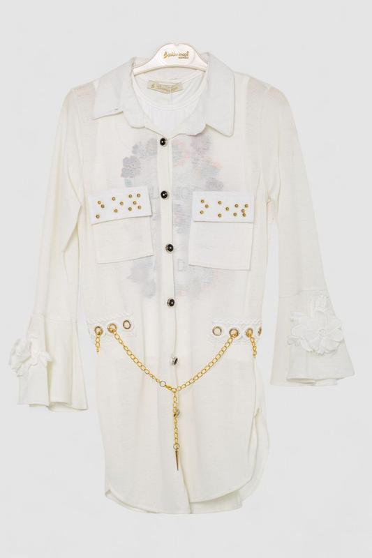 Платье-рубашка в комплекте с майкой для девочек, цвет молочный, 2476495