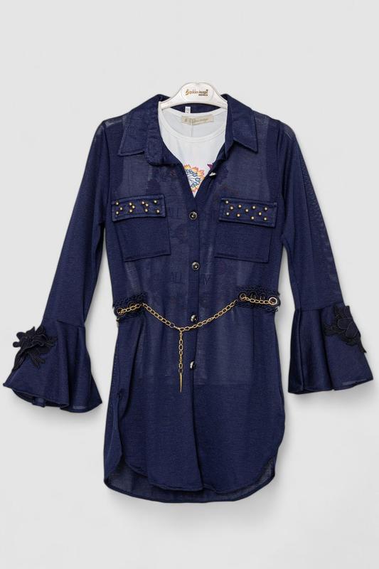 Платье-рубашка в комплекте с майкой для девочек, цвет темно-синий, 2476495