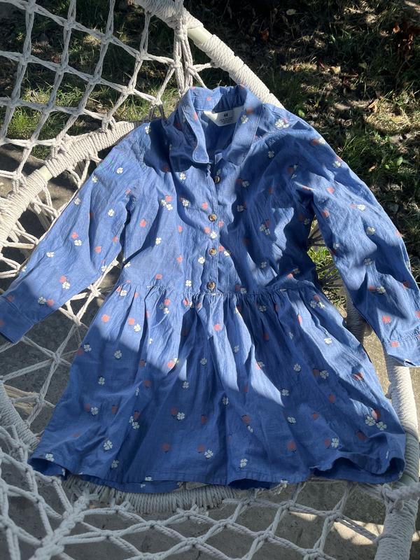 Сукня катонова 100 % , H/M Розмір підійде від 5 і до 7 років Універсальний і гарний фасон на дівчинку, підійде на різну фігуру і зріст до 130 Можна закатувати рукавчик і буде як рукав 3/4 Катон - 100 %