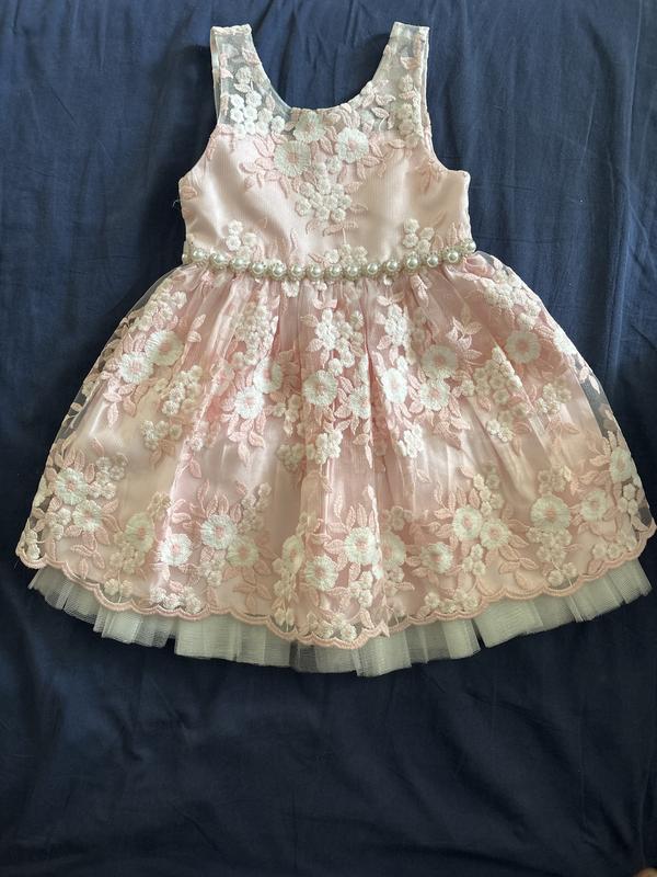 Сукня вживу виглядає краще, ніж на фото. Ніжно рожевий колір зефіру. Сукня має три спіднички, на останній є пляма від фломастеру, яка не видна і не впливає на зовнішній вигляд виробу..