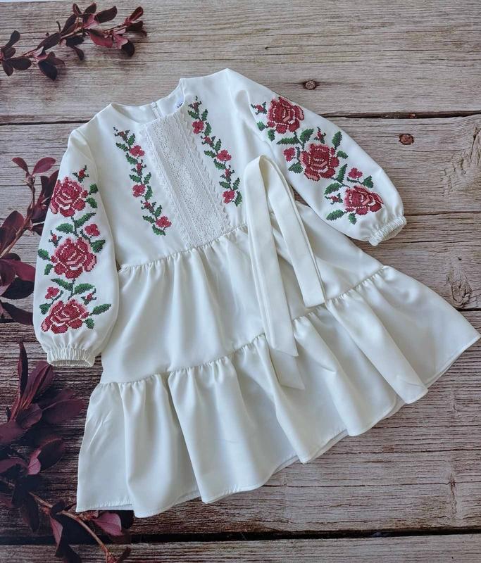 Белое платье с вышивкой на девочку