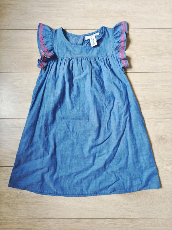 Легкое нежное хлопковое платье для девочки. Указано 8-9 лет, но как на меня то маломерит. На рукавах вышивка, на спинке застегивается на пуговицы. Длина спереди - 69см. Ширина под руками - 40см. В безупречном состоянии.