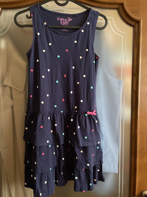 Нова без етикетки Не носилася Довжина 78см ПОГрудей 36см Темно синя В кольоровий горох З рюшами