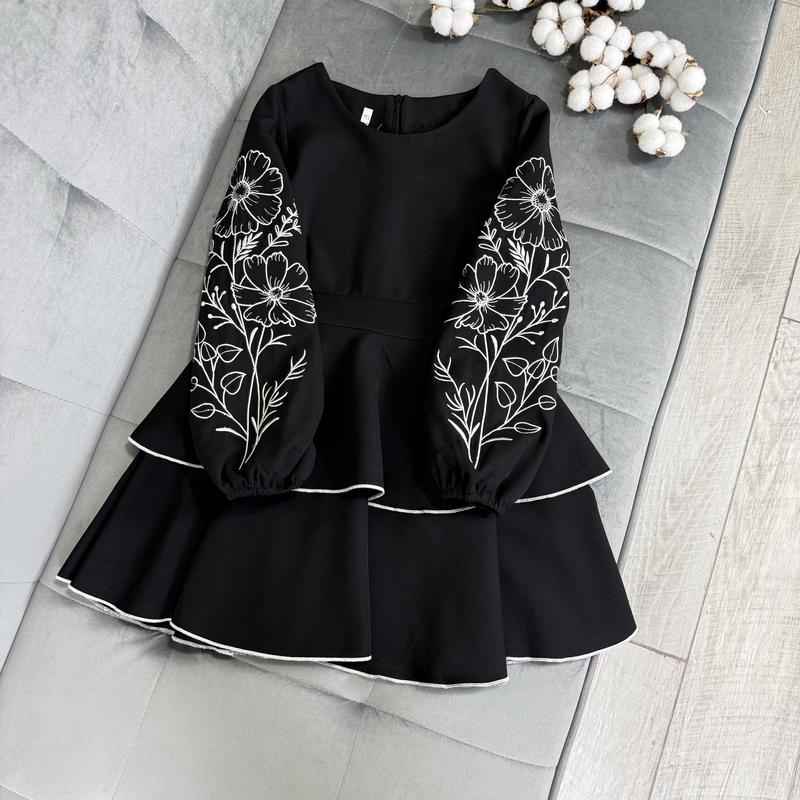 🌸Сукня Квіти чорна, вишита . Тканина костюмка-Барбі. Не линяє, є застібка позаду для зручності. На рукавах гарна вишивка квітів. На рукавчиках резиночка. Виробник Україна. 📐Заміри: 134 - довж. 67 / напівобхват 33 /рук.49 140 - довж. 70 / напівобхват 34 /рук.51 146 - довж. 72 / напівобхват 36 /рук. 54 152 - довж. 74 / напівобхват 37 /рук. 56