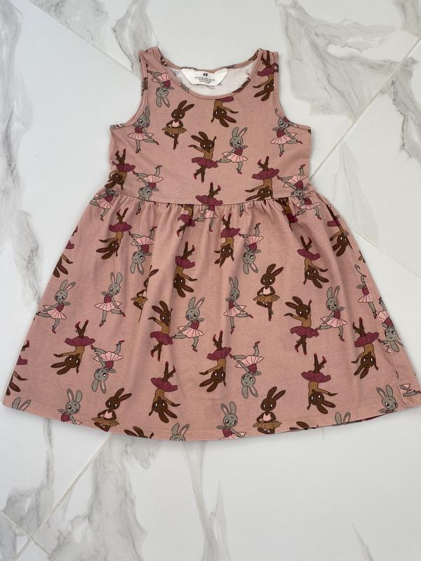 Літнє платтячко для дівчинки. Бренд H&M. Розмір 4-6 років , 110-116. 100% бавовна. В ідеальному стані, без дефектів. З милими малюнками зайчиків.