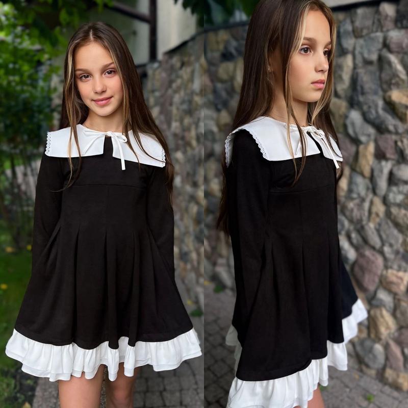 Невероятно красивое платье 🤍 Замш-диагональ Воротничок (снимается) и подклад х/б По спинке молния 122 128 134 140 146 Цена: 860 грн Замеры: рукав от плеча/длина/полуобхват 122 - 41/61/30 128 - 43/65/31 134 - 46/66/32 140 - 48/68/33 146 - 51/70/34