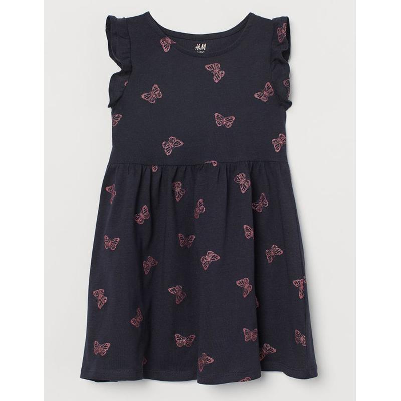 Детское платье платья на девочку. Платье из мягкого трикотажа из органического хлопка. Рукава с оборками и отрезная талия, с декоративным сборкой. H&M Темно-синя 2-4 года - р.98/104: длина 51, ПОГ 27 4-6 лет - р.110/116: длина 58, ПОГ 31 6-8 лет - р.122/128: длина 66, ПОГ 33