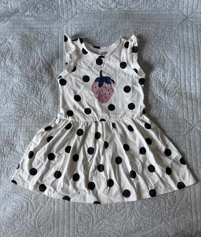 Сукня в горох з полуничкою для дівчинки H&M, нова (з бірками). Розмір 2 роки (92 см). 100% бавовна. 92 см: напівобхват грудей 28,5 см, довжина 52 см