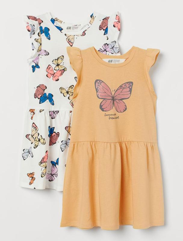 Детские платья платья на девочку (набор). Платье из мягкого трикотажа из органического хлопка. Рукава с оборками и отрезная талия, с декоративным сборкой. H&M 4-6 лет - р.110/116: длина 62, ПОГ 32 6-8 лет - р.122/128: длина 68, ПОГ 34