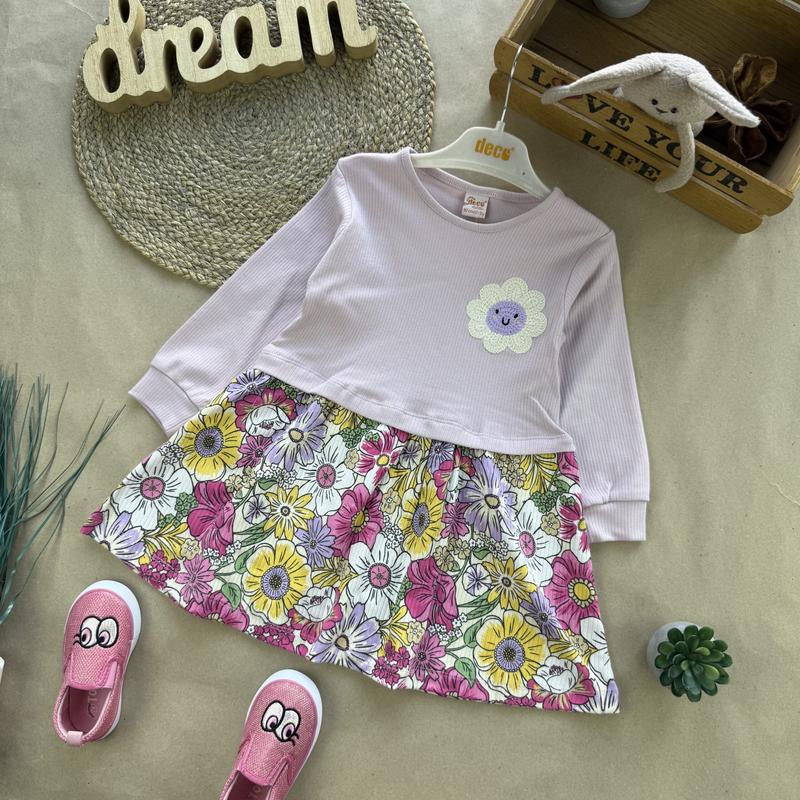 Зручна трикотажна сукня з довгими рукавами, яскравим принтом. Гарно носится, добре сидить і не сковує рухів. Ідеальний вибір для садочка, прогулянок та свят! Розміри: 92 (по бірці 2-3) – рукав 30 / довжина 49 98 (по бірці 3-4) – рукав 33 / довжина 52 104 (по бірці 4-5) – рукав 35 / довжина 56 110 (по бірці 5-6) – рукав 37 / довжина 58