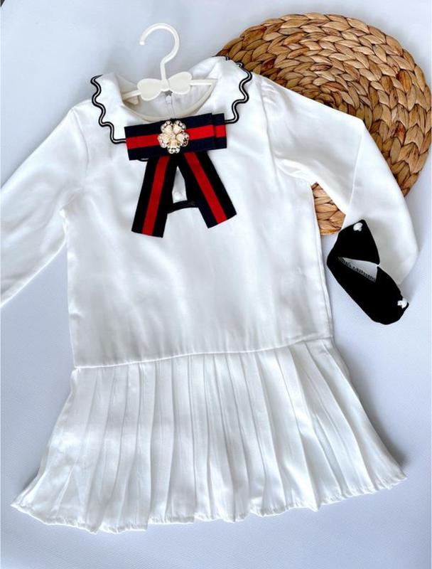 Нова сукня для дівчинки на зріст 100-104 см, з брошкою. Низ як у спідничках плісе. Майже не мнеться. Відправка дуже швидка