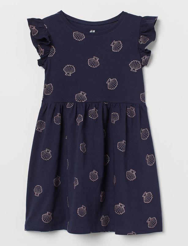 Детское платье из мягкого хлопкового трикотажа. Рукава с оборками и отрезная талия, с декоративной сборкой. H&M 2-4 года - р.98-104: длина 55, ПОГ 29