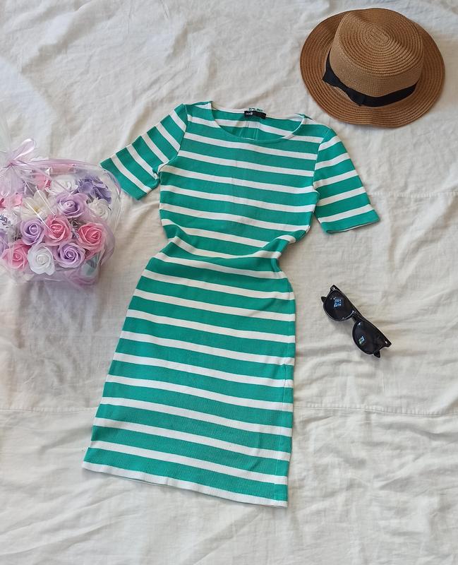 Мини платье для подростка или не высокой девушки на размер xxs. Бело салатовые полоски, сзади пришита короткая молния-обманка (можно аккуратно снять) Стан идеален, единственный дефект маленькая незаметная точка на последнем фото. Замеры (тянется): плечи 30, грудь 32, талия 28, бедра 32, длина 77 см. ПОДАРОК на выбор, смотрите другие Мои объявления указано в описании.