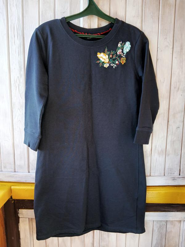Платье-туника на девочку. Имеет рукав 3/4, ткань с утеплением. Длина 84 см, рукав 43,5 см. Без пятен и дефектов.