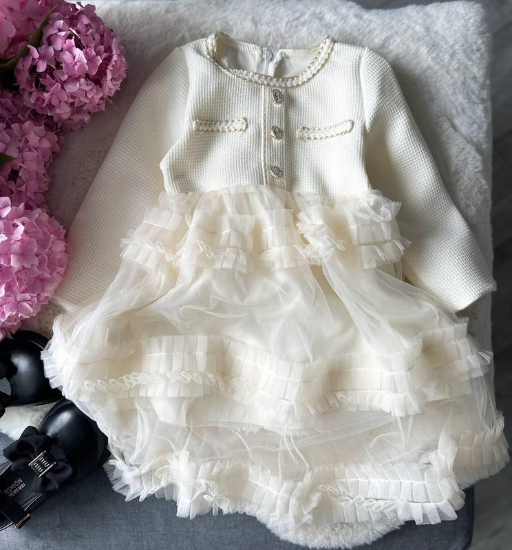 Інст babystore__clothing красива твідова сукня з фатіновою спідничкою відмінна якість Заміри 100- рукав 34см, довжина загальна 62см, ширина 27см 110- рукав 36см, довжина загальна 65см, ширина 29см 120- рукав 38см, довжина загальна 68см, ширина 30см 130- рукав 40см, довжина загальна 70см, ширина 32см 140- рукав 42см, довжина загальна 72см, ширина 150- рукав 44см, довжина загальна 74см, ширина 38см !замір однієї ростовки,можлива похибка 1-3см